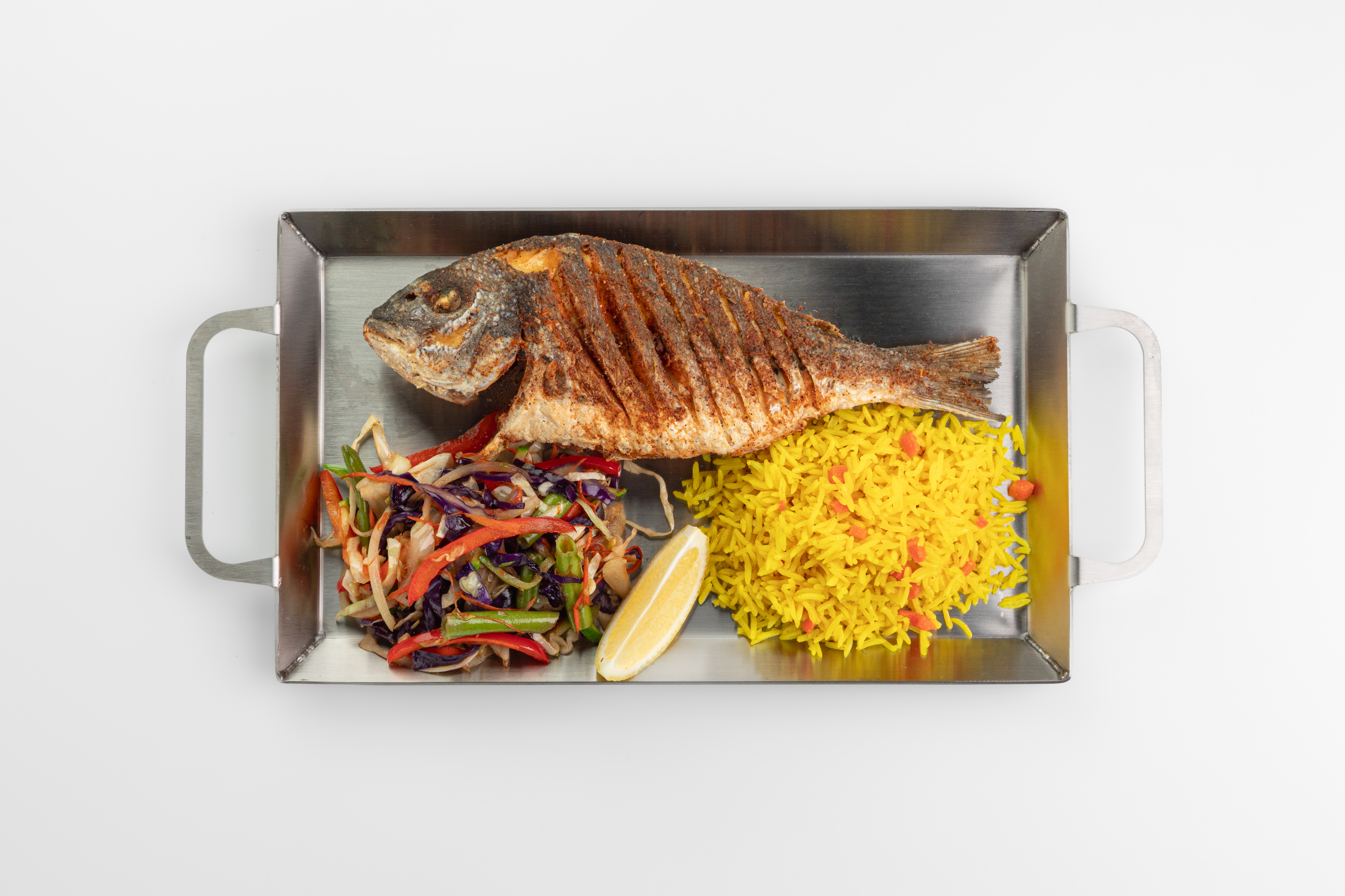 Комбо из рыбы дня, приготовленной по вашему выбору и кальмары, выращенные в специальной ферме для Ocean Basket. Подается с двумя гарнирами на выбор (2 шт). Рыбу дня можете заменить на камбалу.